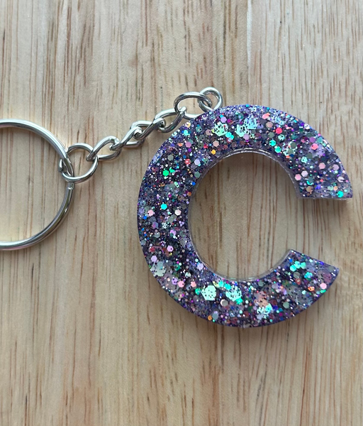 Measuring approximately 1.5” tall, this gorgeous keychain is made from high quality resin and glitter.