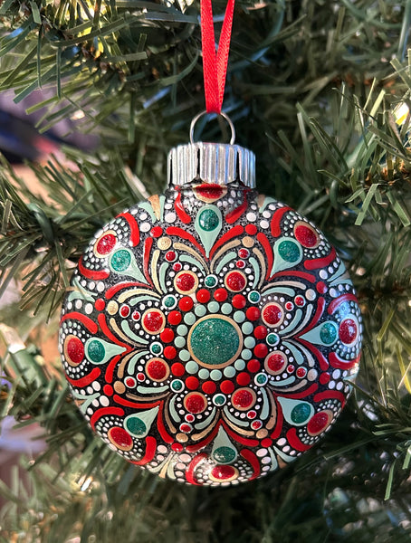 Measuring approximately 3” in diameter, this beautiful hand painted ornament is the perfect addition to your tree this year! Made from high quality acrylic, these ornaments are safe for children to handle. They are filled with glitter to give your tree an extra bit of sparkle!